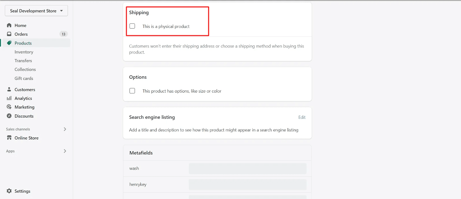 Since digital products don’t require shipping, go to Settings > Shipping and click the “This is a physical product” checkbox to set shipping to None for digital products.