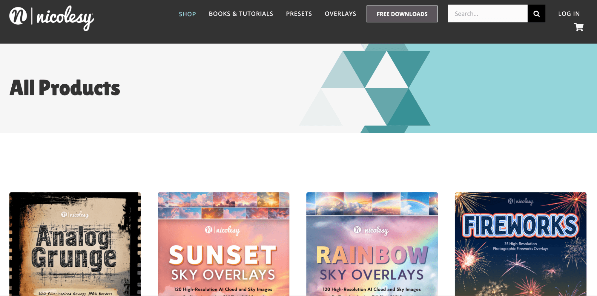 Products: Lightroom presets, Photoshop actions, textures, overlays, eBooks, video tutorials.