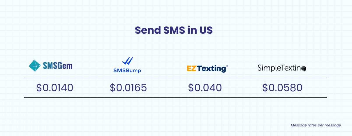 - SMS pricing: Sending an email is free (theoretically), but with SMS, you have to pay for each SMS. So let’s take a look at SMS Pricing and see what fits your budget.