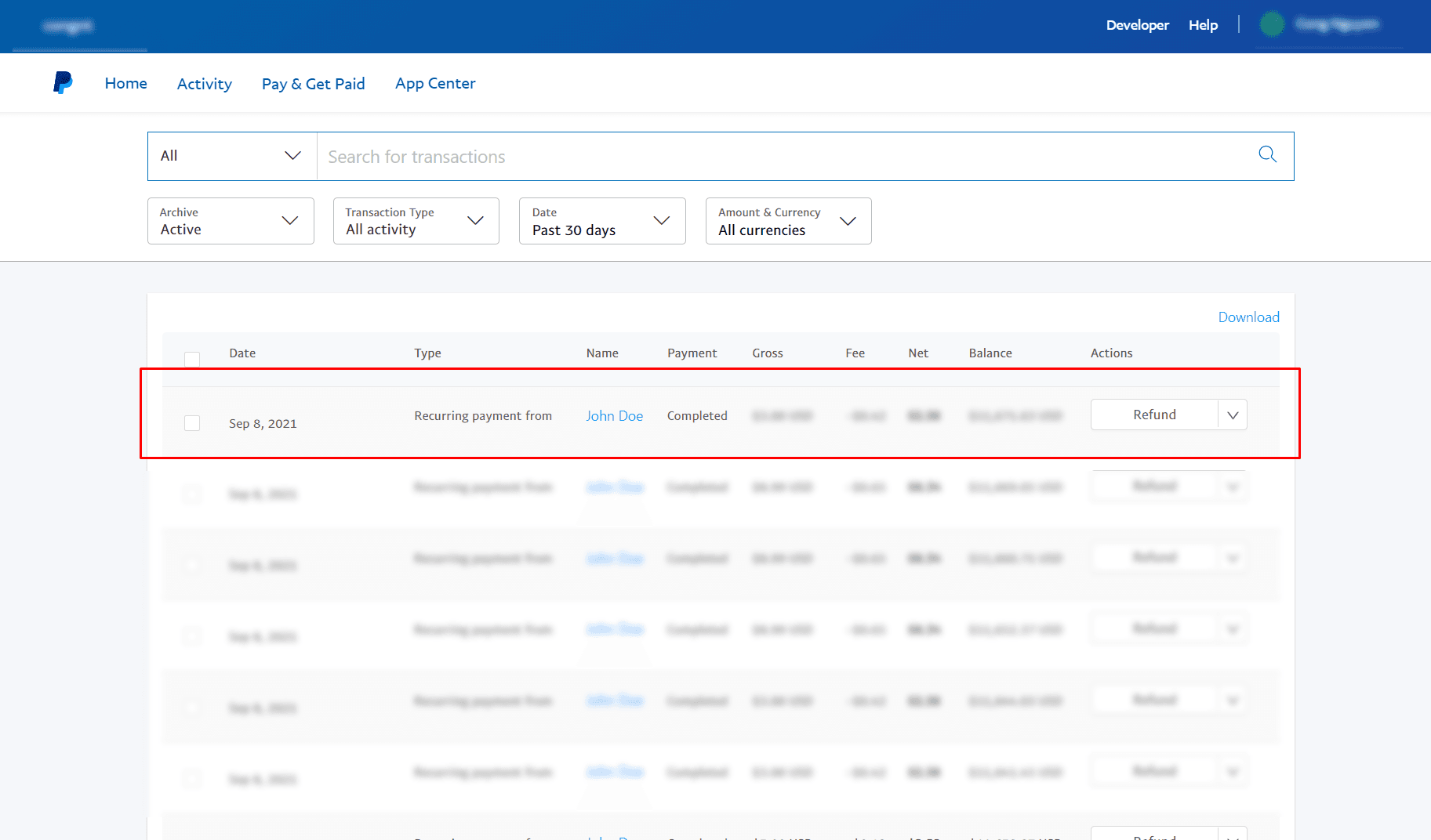 Find the transaction you would like to update, then click Get your money.