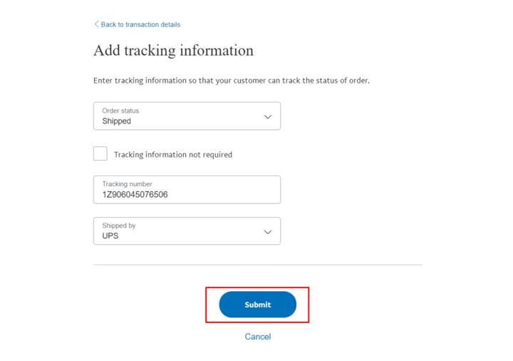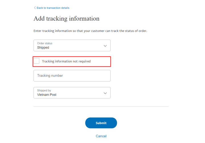 If you sold a product, select Product to add tracking information, please click the button that says shipping information is not required.