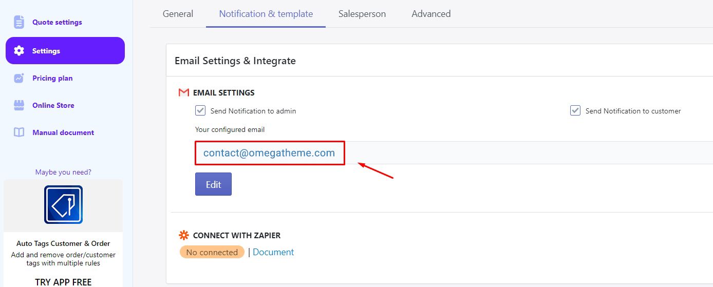 You can check your email settings to receive quote request notifications in your app. Email from this address will send to your staff account/own account.