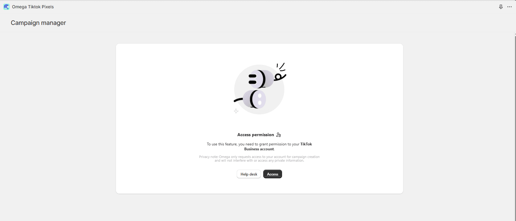Connect your TikTok Ads account directly through the Omega TikTok Pixels app.