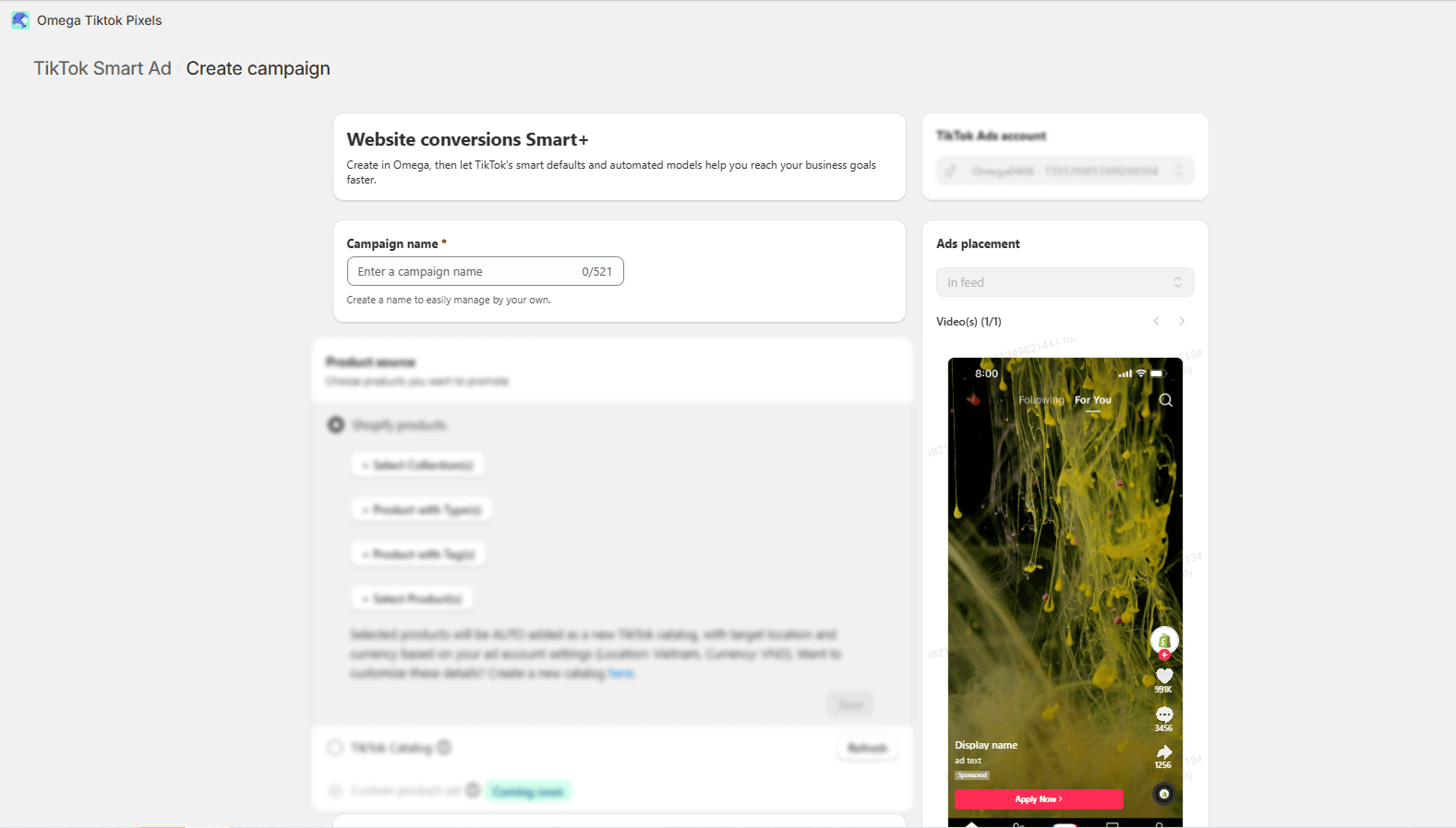 Unlike traditional Manual campaigns, which require users to go through all three levels: “Campaign” > “Ad Group” > “Ad”, and configure each step in detail, Omega supports TikTok’s Smart+ campaign flow. You only need to set everything up once in a streamlined interface.