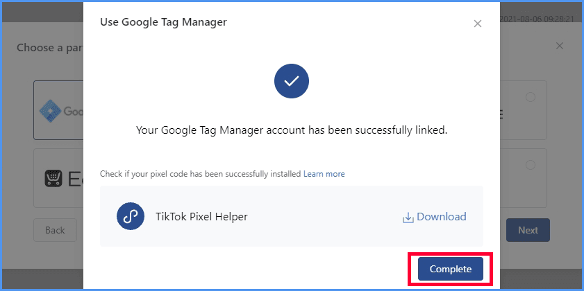- Next click Complete so you have completed installing Tiktok Pixel code.