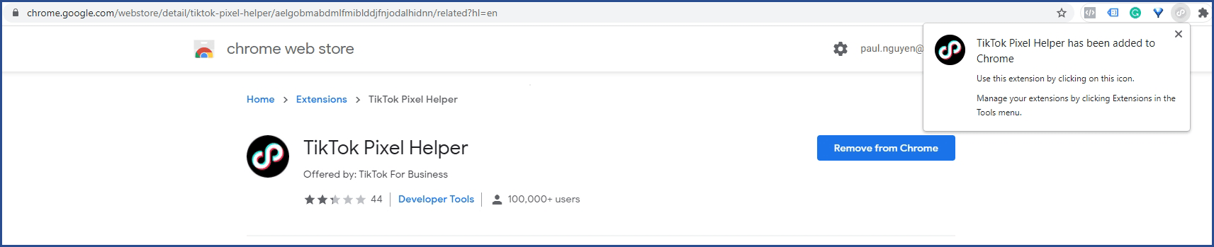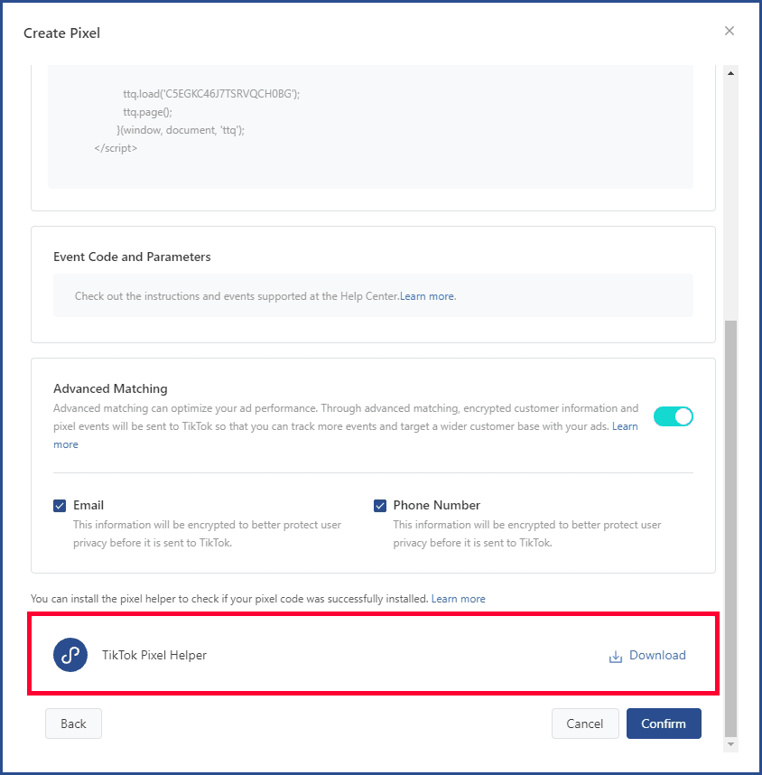 After finishing installing TikTok pixel, from TikTok Ads Manager, you can see the page showing an option to download TikTok Pixel Helper, click Download, a popup will appear, choose Download TikTok Pixel Helper or you can simply go to Chrome extensions.