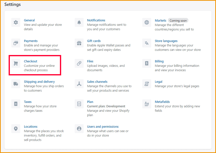 - Click Save then go to Settings, choose Checkout