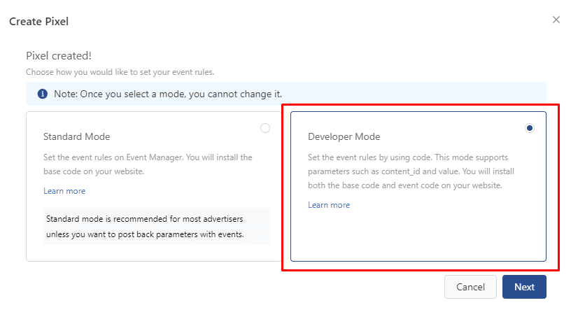 - With the Manually Install Pixel method, After inputting pixel name then click Next