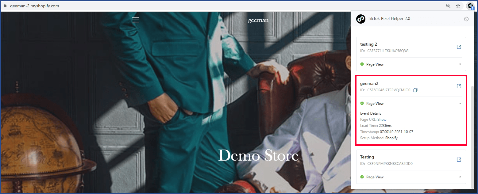 - Finally, you can check the pixel triggers on your store
