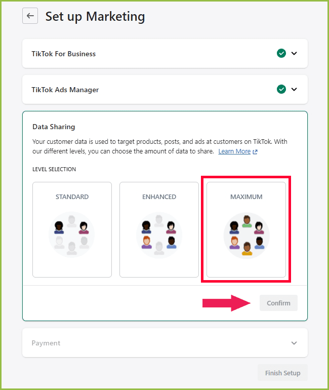 - Finally, you can set up your payment info for your Tiktok account