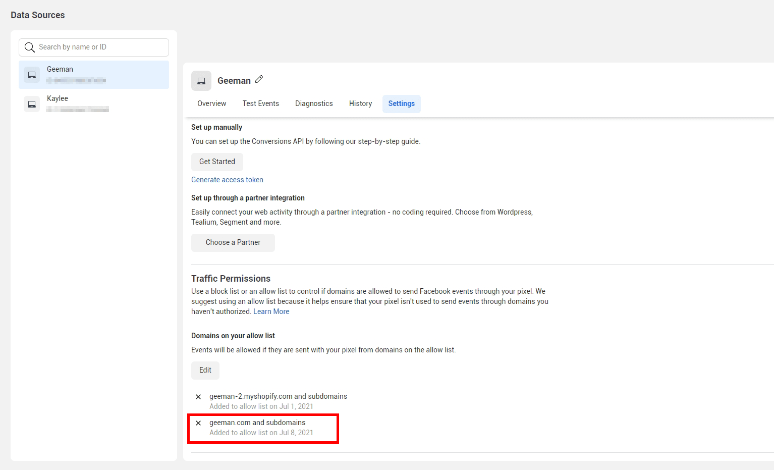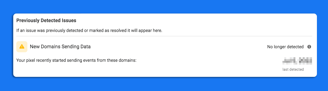 Your pixel recently started sending events from these domains.