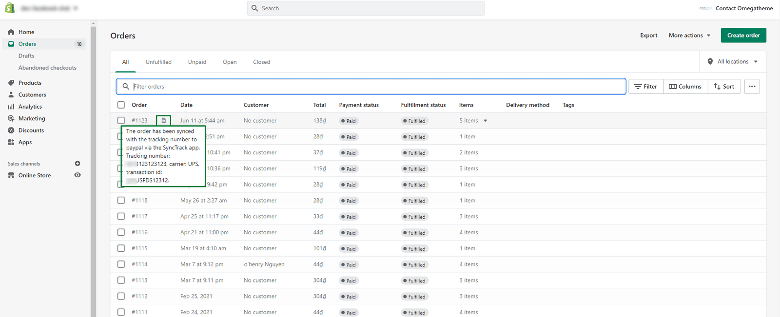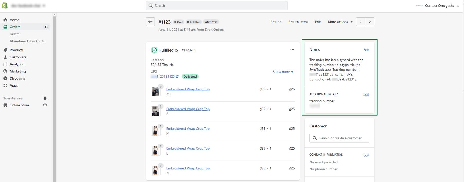 If these requirements are satisfied, your order information, including details about your order, will be completely displayed on Shopify, including: