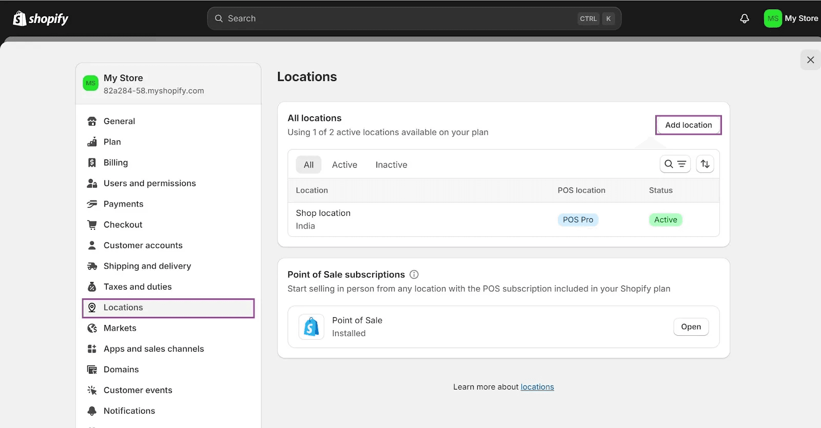 In the POS settings, locate your store locations.