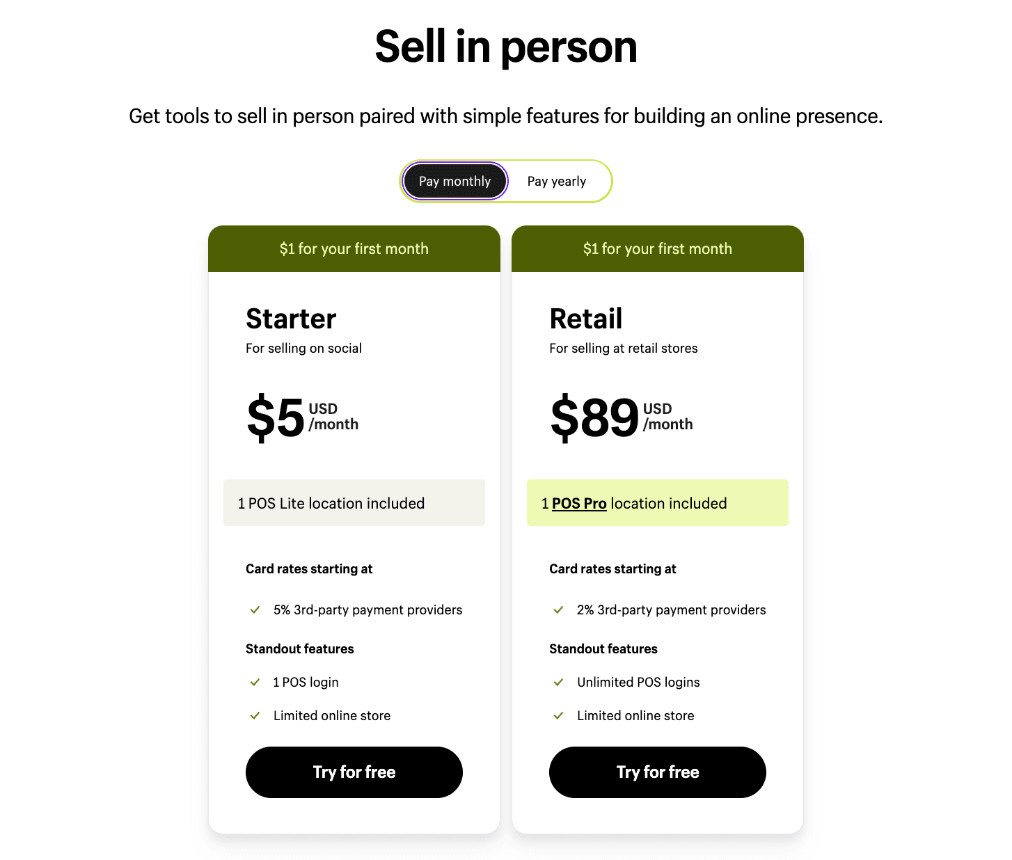 For businesses that sell both online and in-store, Shopify POS Pro is an additional add-on to Shopify’s online subscription plans: