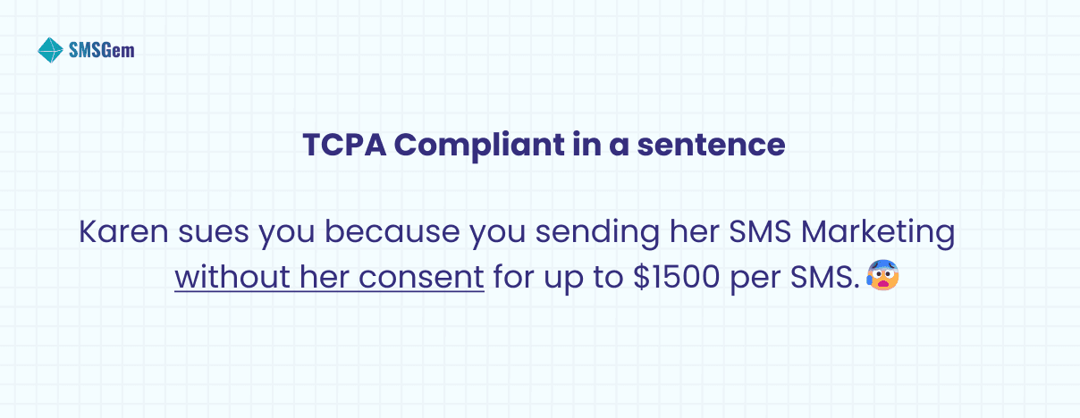 So if things go well, Karen rushes to checkout with your discount. Easier huh? But (yeah things often don’t flow the way we want) if Karen is not in the mood right now and feels like such an invasion of her privacy. She sues you – the owner of the aroma store, with proof of TCPA Violations and you might pay up to $1500 per violation. Ouch!”