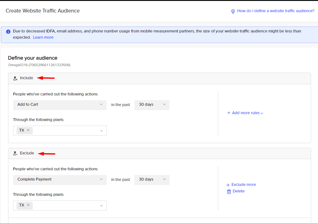 If those same people added another product to the cart within that session but haven’t bought anything, you might want to know what that other product is to create, say, a bundle offer? If you’ve lumped all your site traffic into 1 pixel, there’s no way to find out that with a custom audience yet.