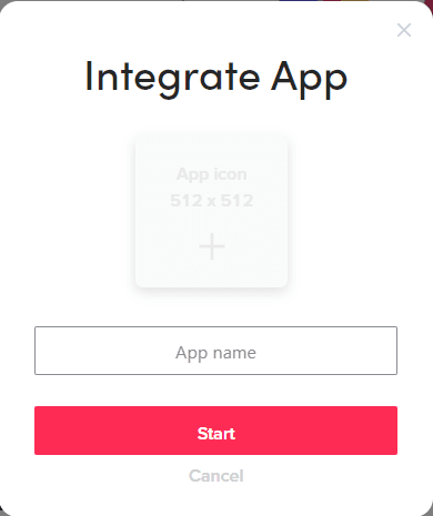 Upload the icon for the app you wish to connect with TikTok and give it a name. To continue, press Start.