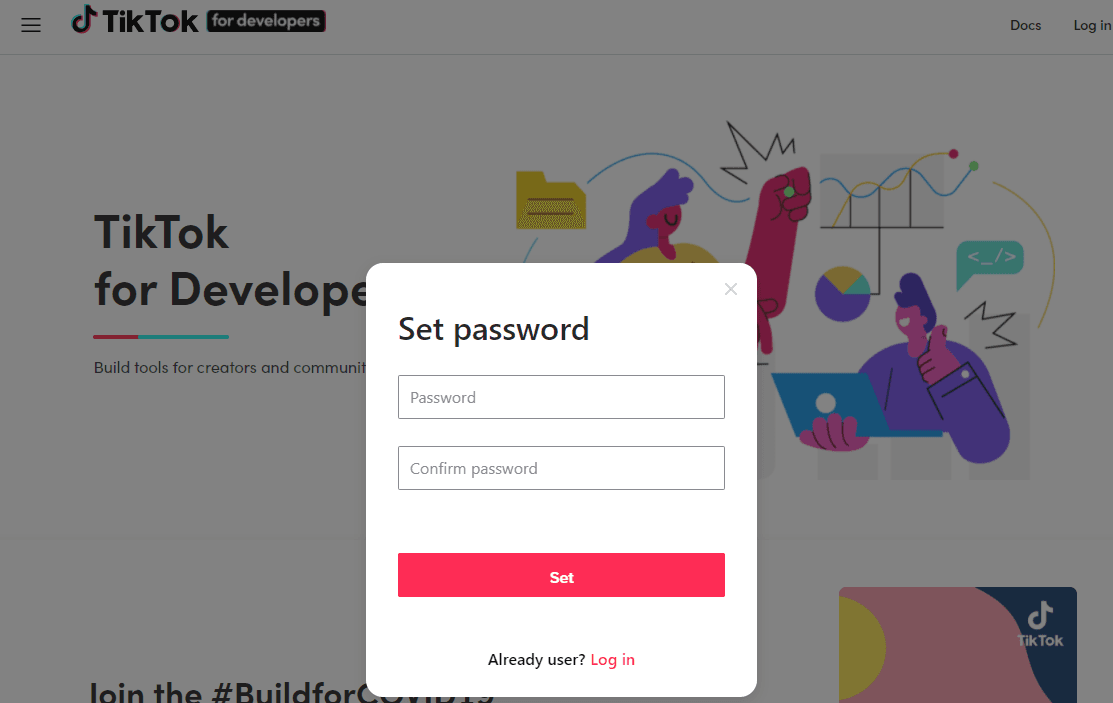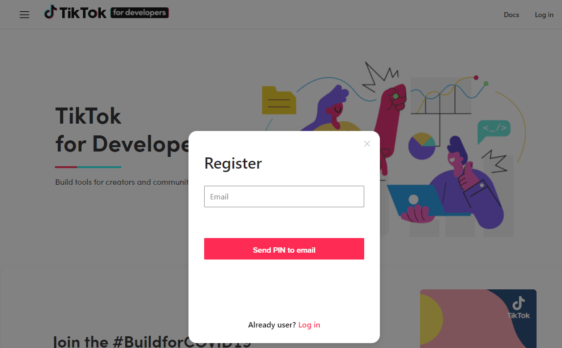First, go to the TikTok developers portal and register an account.