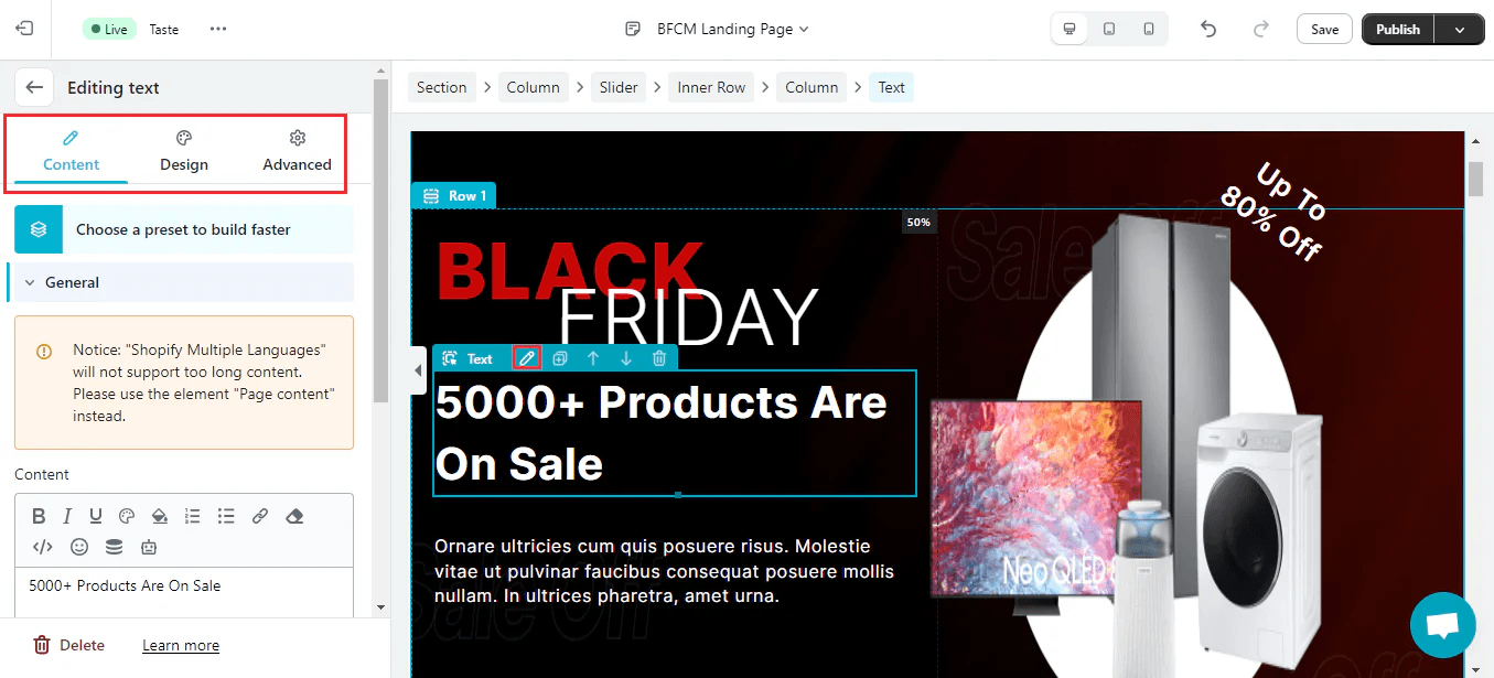 Select a Shopify theme designed specifically for sales events like BFCM. These themes are optimized for high conversion rates, fast loading, and feature sales-focused elements like large promotional banners, countdown timers, and urgency messaging.