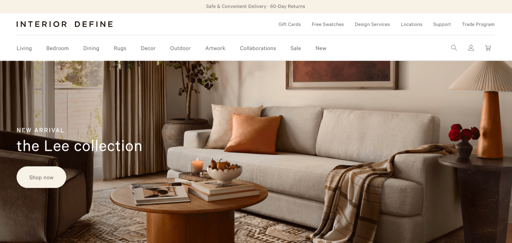 With a variety of fabric, size, and color options available, Interior Define allows customers to customize their furniture, helping them create pieces that are perfectly tailored to their personal style and home.