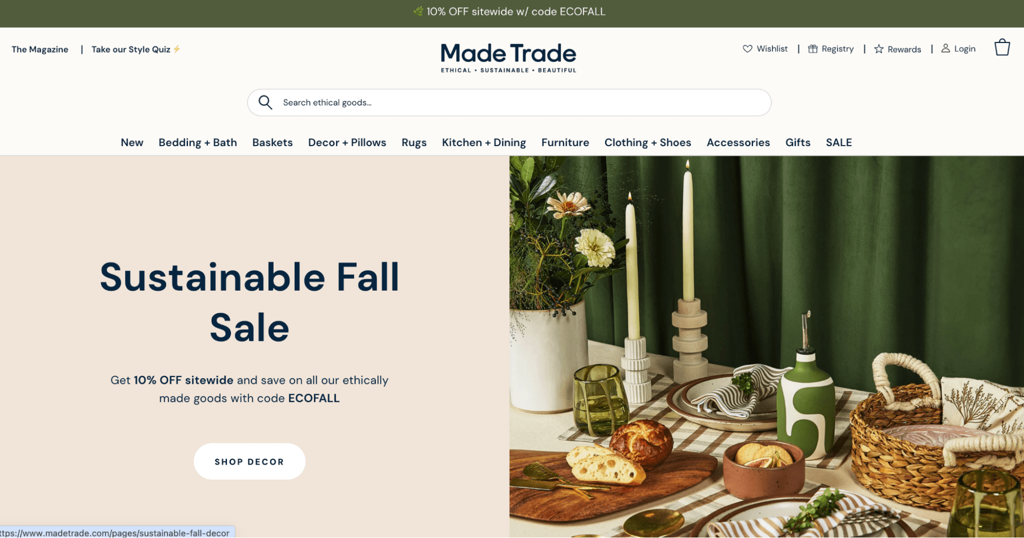 Made Trade offers a wide range of ethically-made, sustainable home decor products. With a focus on fair trade and eco-friendly materials, the store promotes transparency and supports artisans worldwide.