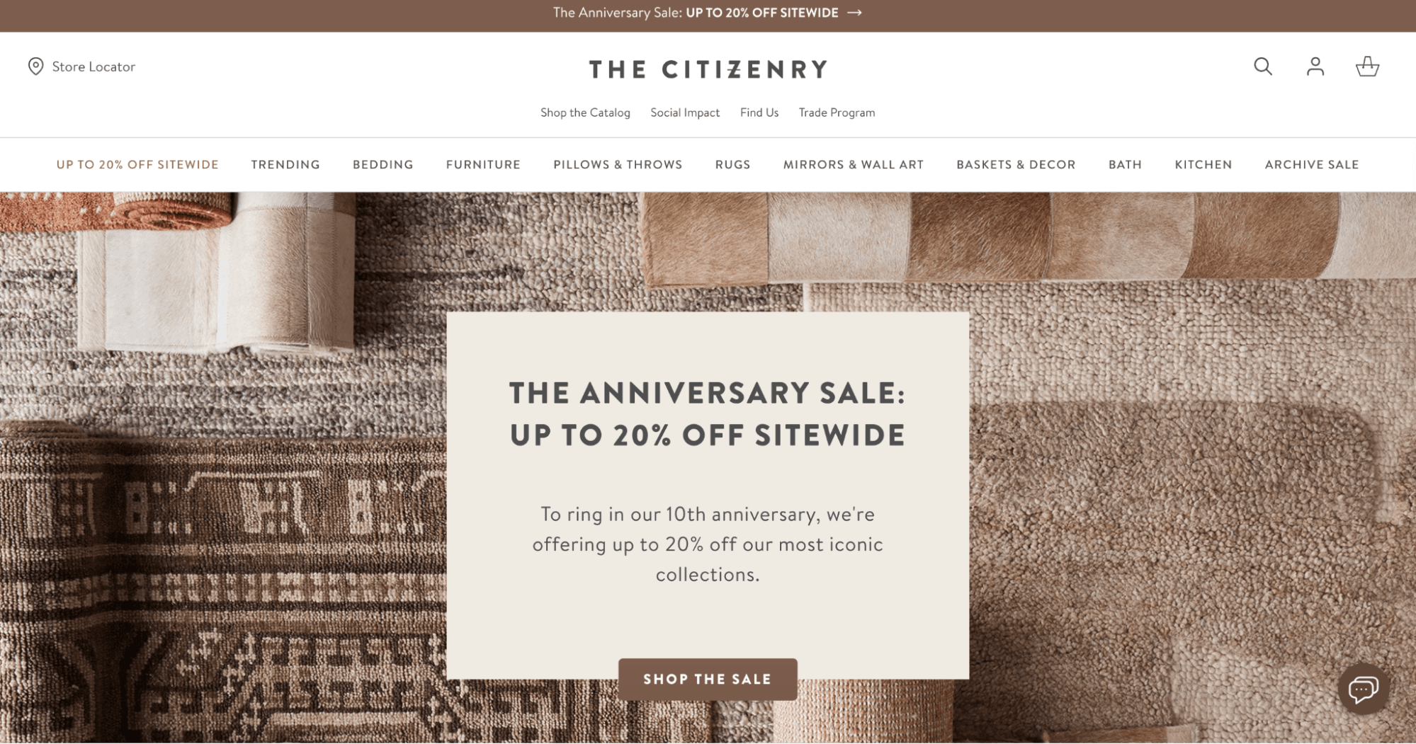 Renowned for its handcrafted, sustainable home decor, The Citizenry sources products from artisans around the world. The store offers globally inspired designs while emphasizing ethical practices and fair wages for its artisans.