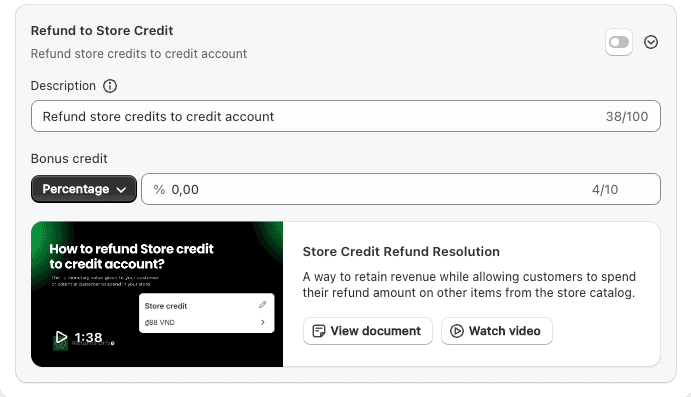 Step 2: Enable Refund to Store Credit by shifting the toggle and add a brief description.