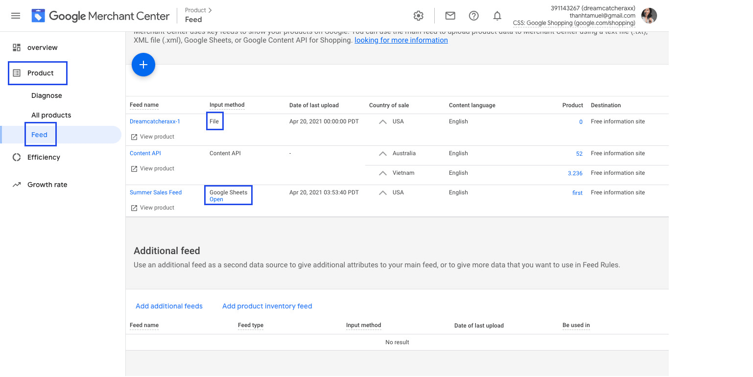 - Upload the feed to Merchant Center under “Products” > “Feeds.”