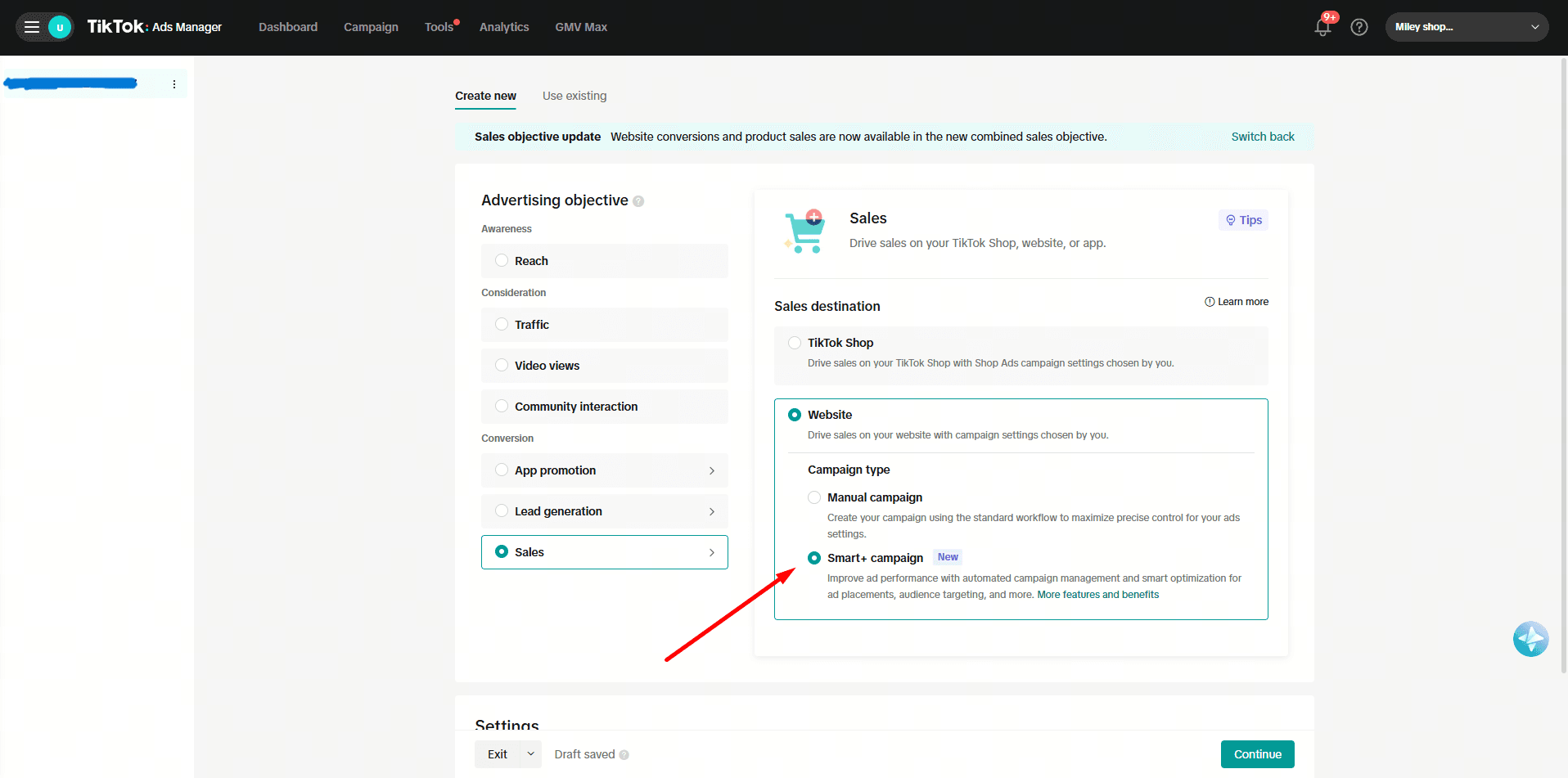 - Smart+ Web Campaign: Used to drive website conversions such as purchases or signups. TikTok optimizes delivery using Pixel data, so you don’t need to fine-tune every setting.